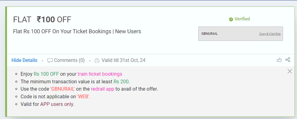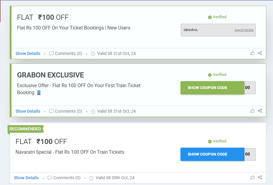 See how GrabOn has clearly mentioned the details of the coupons